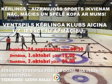 Ventspils kērlinga klubs aicina interesentus iepazīt olimpisko sporta veidu kērlingu. Kērlings ir spēle, kuru var spēlēt ikviens – sākot no jauniešu, līdz senioru vecumam. Lai sāktu spēlēt kērlingu, iesākumā pietiks ar vēlmi pamēģināt un nedaudz sportiska azarta. Tāpēc Ventspils kērlinga klubs aicina – nāciet, mācieties un spēlējiet kopā ar mums!