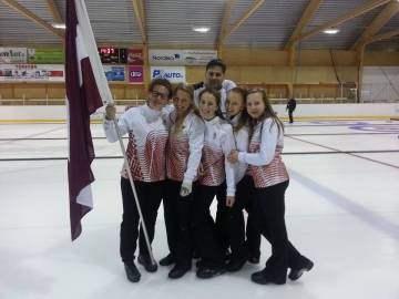 Meiteņu konkurencē Latvijas komanda arī tika ielozēta B grupā kopā ar Ungārijas, Anglijas, Vācijas, Igaunijas un Somijas sportistēm. Jau pirmajā grupu apļa spēlē pret Igaunijas vienaudzēm Latvijas izlases meitenes centās izcīnīt savu pirmo uzvaru starptautiskās sacensibās taču pēc izvirzīšanās vadībā 5 – 0 tomēr tika piedzīvots zaudējums 5 – 6 pret mūsu kaimiņvalsts jaunajām kērlingistēm. Pirmā vēsturiskā uzvara tomēr tika izcīnīta uzveicot Somijas izlasi ar 8 – 7.