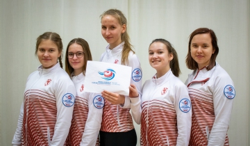 Latvijas junioru meiteņu izlases sastāvs: Evelīna Barone (skips), Rēzija Ieviņa, Veronika Apse, Ērika Bitmete, Madara Bremane, trenere Iveta Staša-Šaršūne.