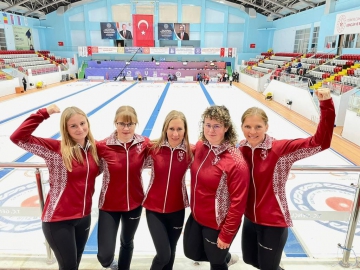 Latvijas sieviešu izlases sastāvs: Santa Blumberga-Bērziņa (skips), Evelīna Barone, Ieva Krusta, Ieva Rudzīte, Tīna Siliņa, treneris Ritvars Gulbis, trenera asistents Roberts Krusts.
