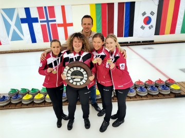 Veiksmīgi nospēlētais devītais ends Stabulnieces četriniekam atnes trīs punktus (7:8), ar pēdējo metienu caur savu akmeni izsitot pretinieču akmeni. Pateicoties lieliskam Elīzas Stabulnieces pēdējam akmenim 10.endā, viņām izdevās nozagt punktu (8:8) un ievest spēli ekstra endā. Tajā D.Barone savu pēdējo akmeni precīzi ieliek tuvāk mājas centram, nodrošinot uzvaru ar 9:8 un bronzas medaļas, spēlējot visu čempionātu trīs spēlētāju sastāvā.