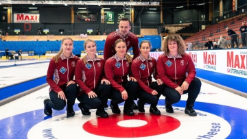 Latvijas sieviešu izlases sastāvs: Santa Blumberga-Bērziņa (skips), Ieva Rudzīte, Katrīna Gaidule, Tīna Siliņa, Betija Gulbe, treneris Ritvars Gulbis.